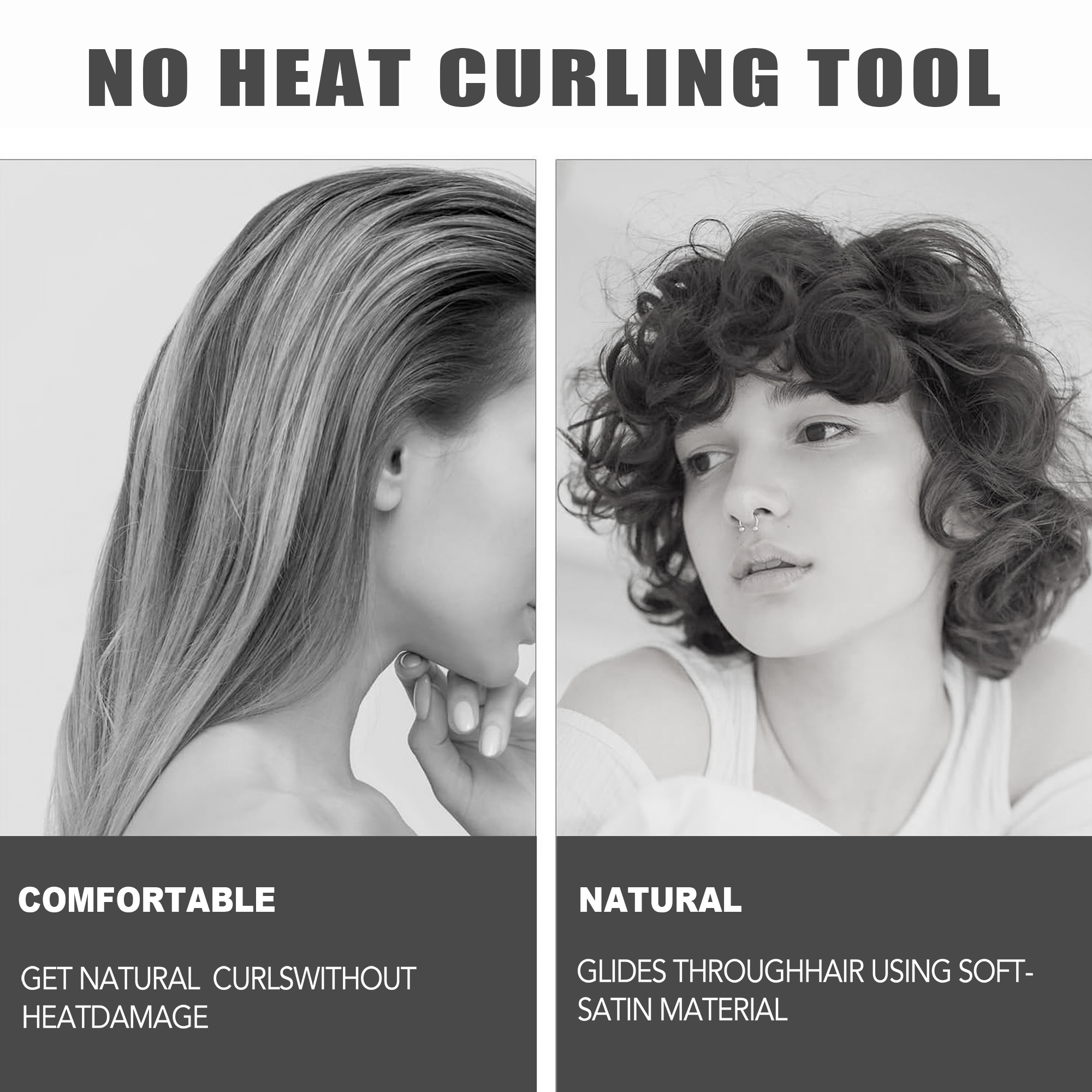 3 Pack Heatless Curls Hair Curler, Flexible Satin Heatless Long Hair Rollers, Soft DIY Wave Hair Rollers Styling Tool for Long Medium Hair Curls (Grey)