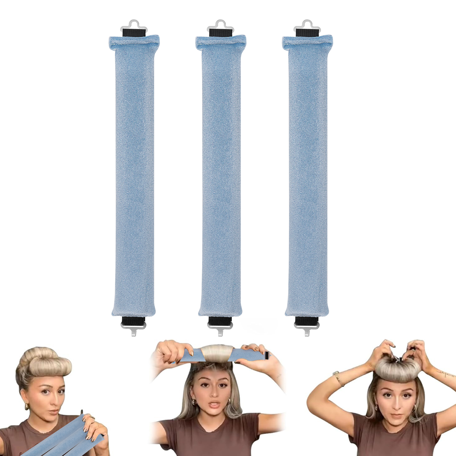 3 Pack Heatless Hair Curler, Flexible Satin Heatless Hair Rollers, Soft DIY Wave Hair Rollers Styling Tool for Long Medium Hair Curls (Blue)