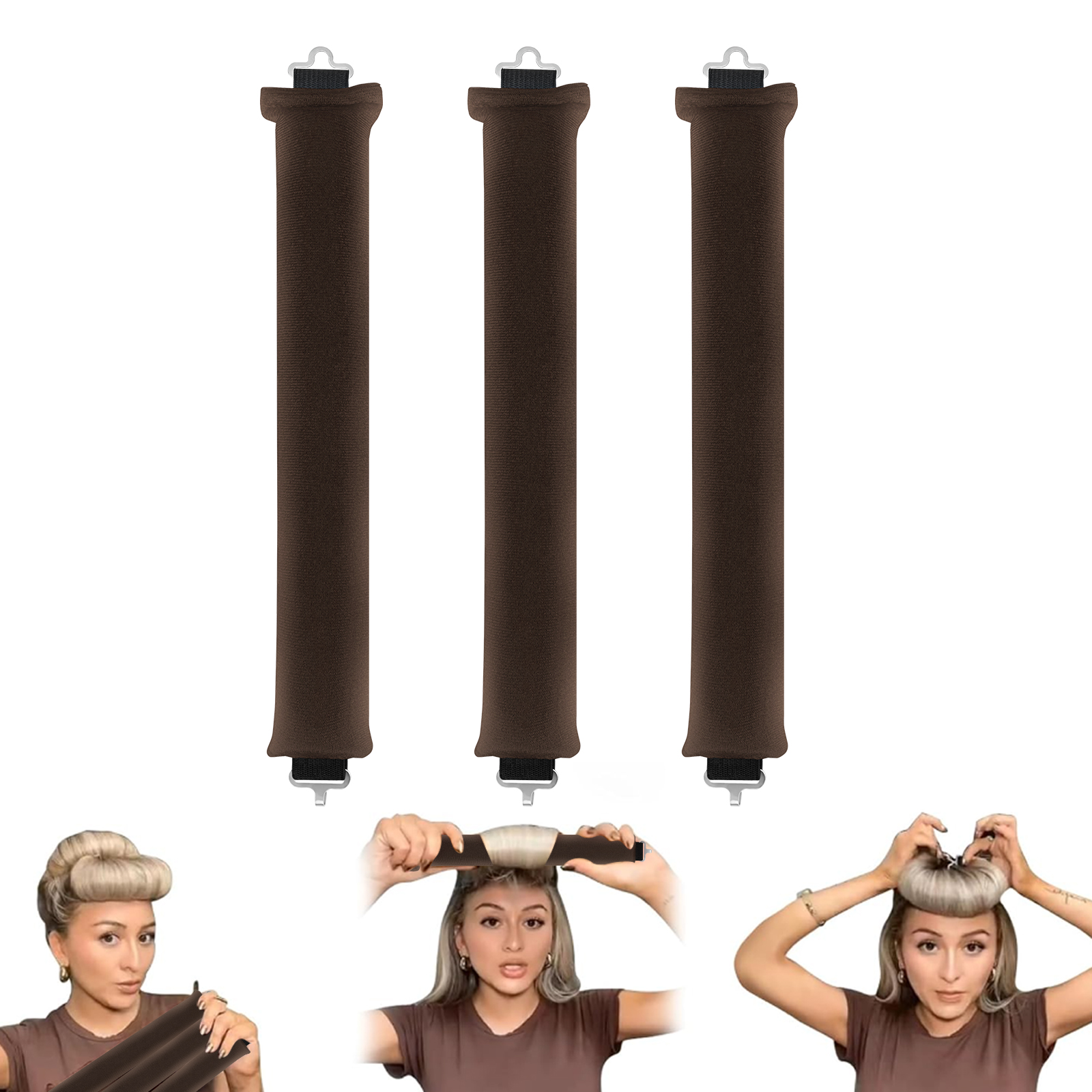 3 Pack Heatless Hair Curler, Flexible Satin Heatless Hair Rollers, Soft DIY Wave Hair Rollers Styling Tool for Long Medium Hair Curls (Brown)