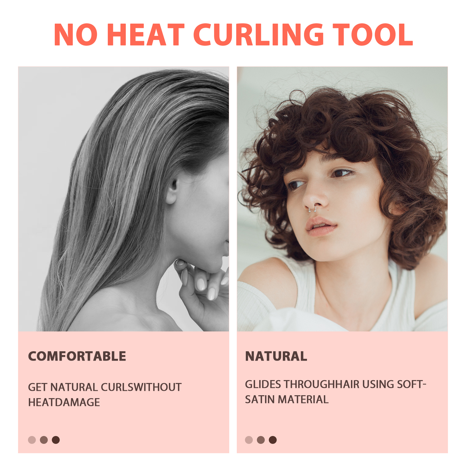 Heatless curlers suitable for most of hair types and textures, can turn straight hair into bouncy curly hair, reduce hair breakage and spilt ends.