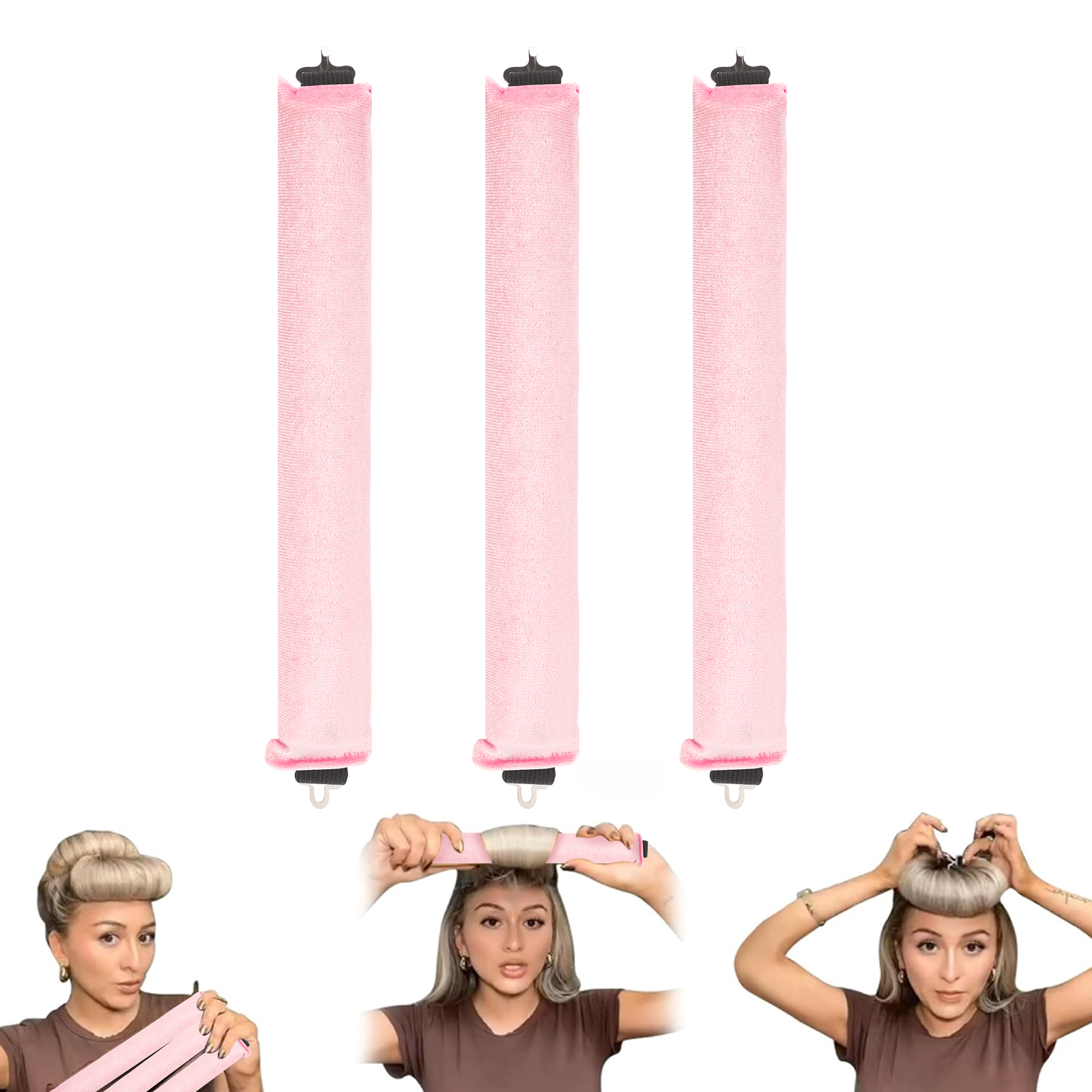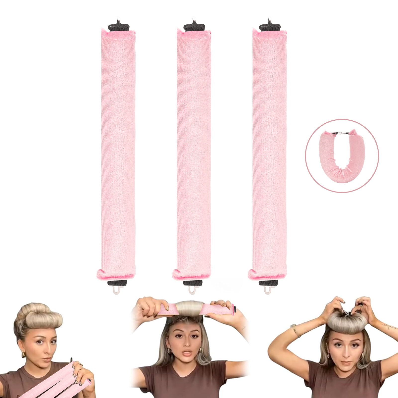 3 Pack Heatless Hair Curler, Flexible Satin Heatless Hair Rollers, Soft DIY Wave Hair Rollers Styling Tool for Long Medium Hair Curls (Pink)