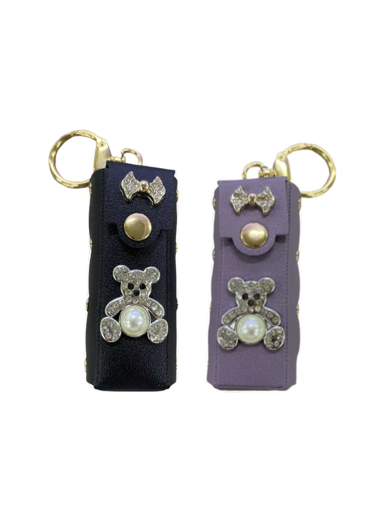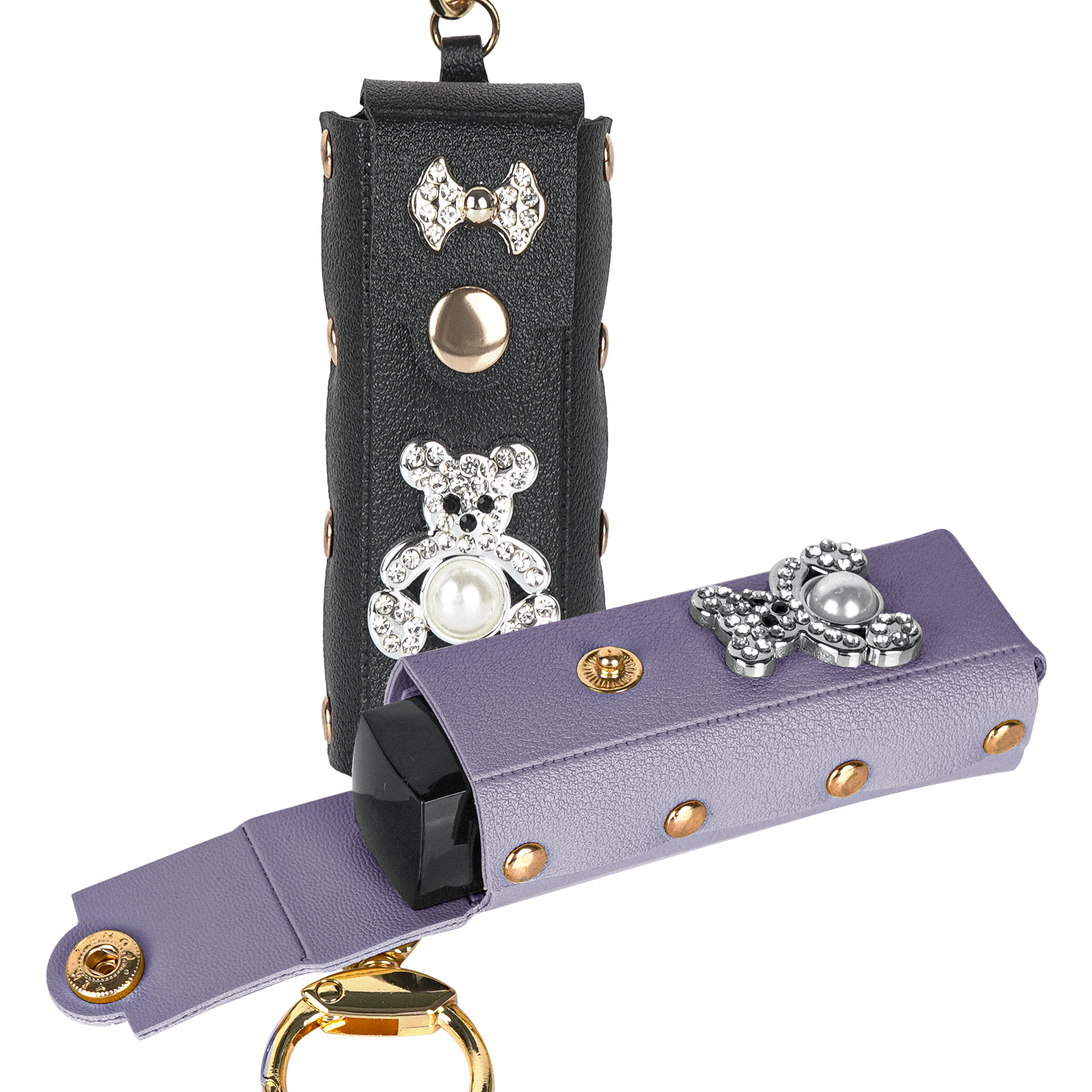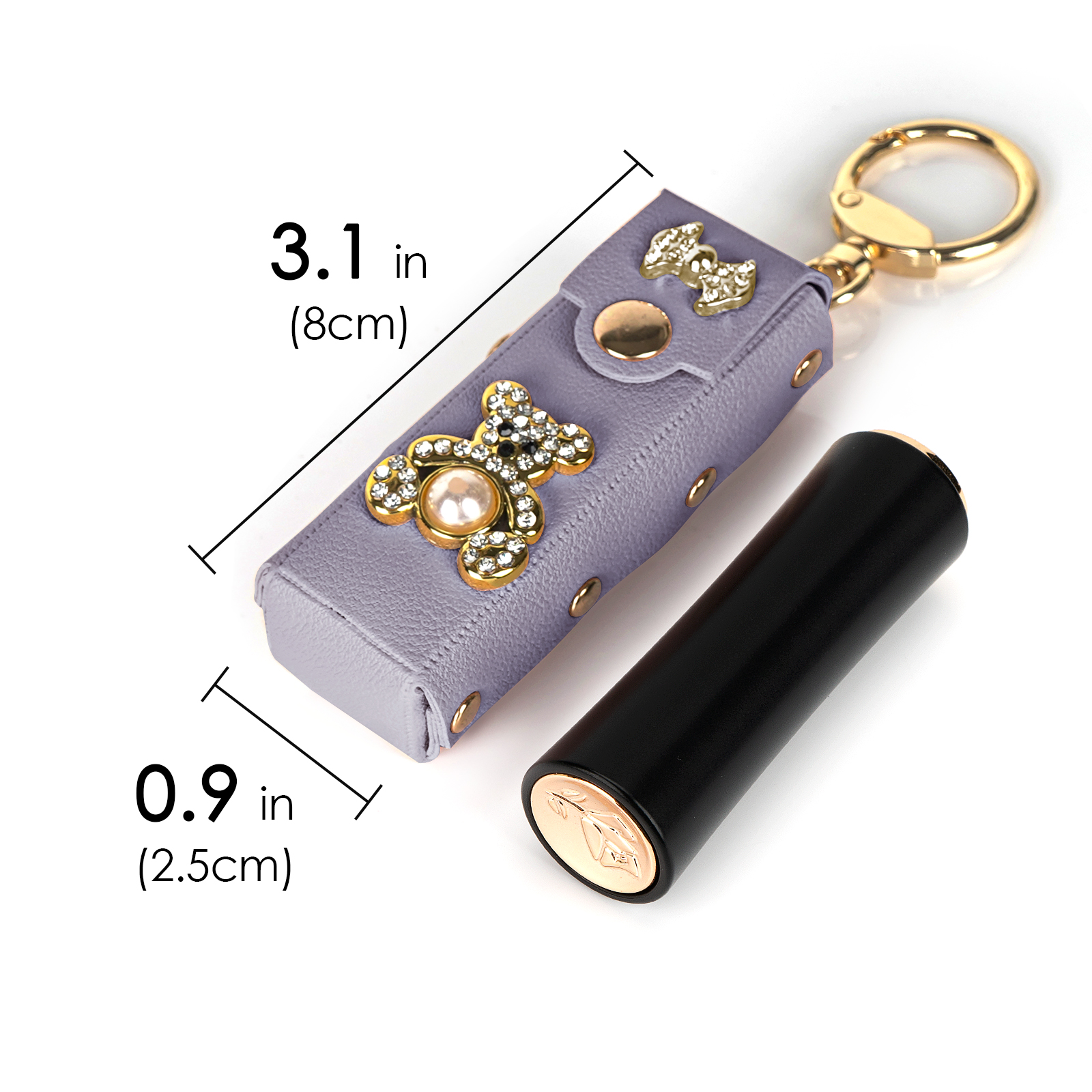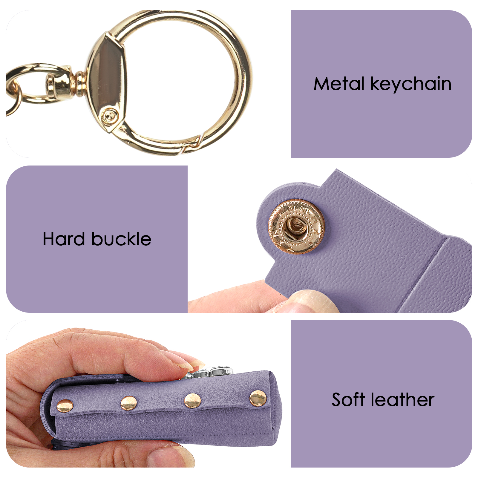 Pack Chapstick Holder Keychain, Leather Lip Gloss Bag Lip Balm Holder for Travel, Portable Small Lipstick Organizer for Women (Black, Purple)