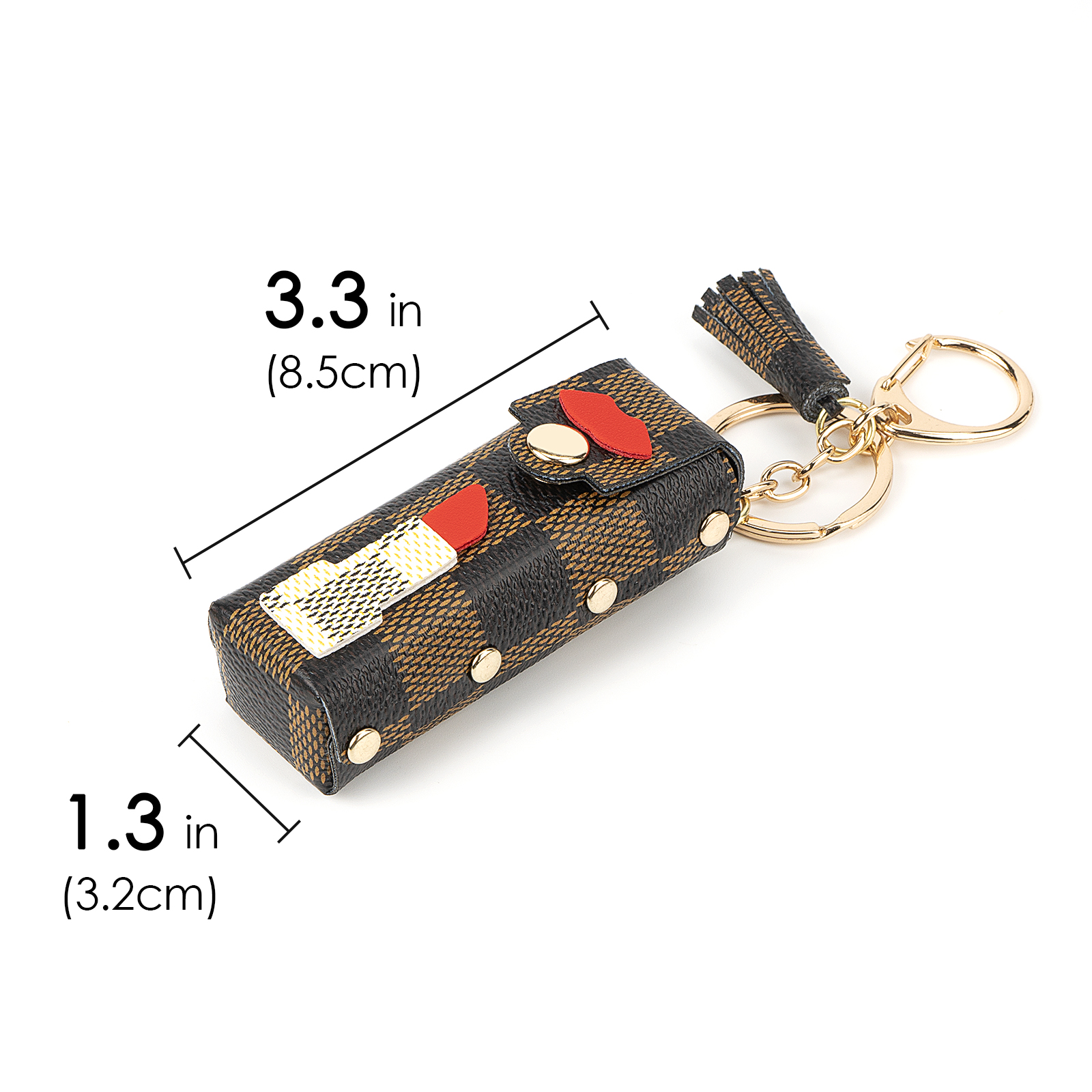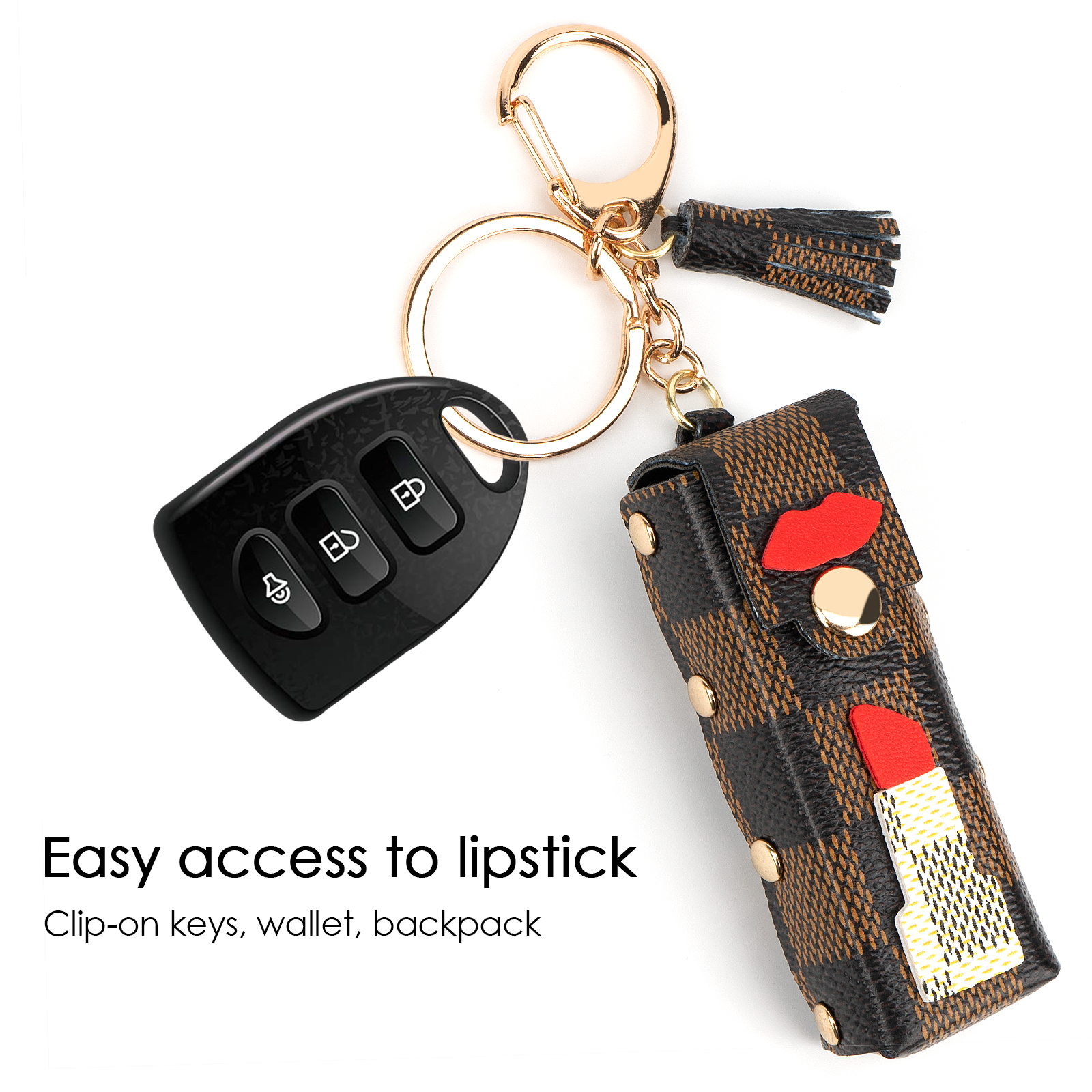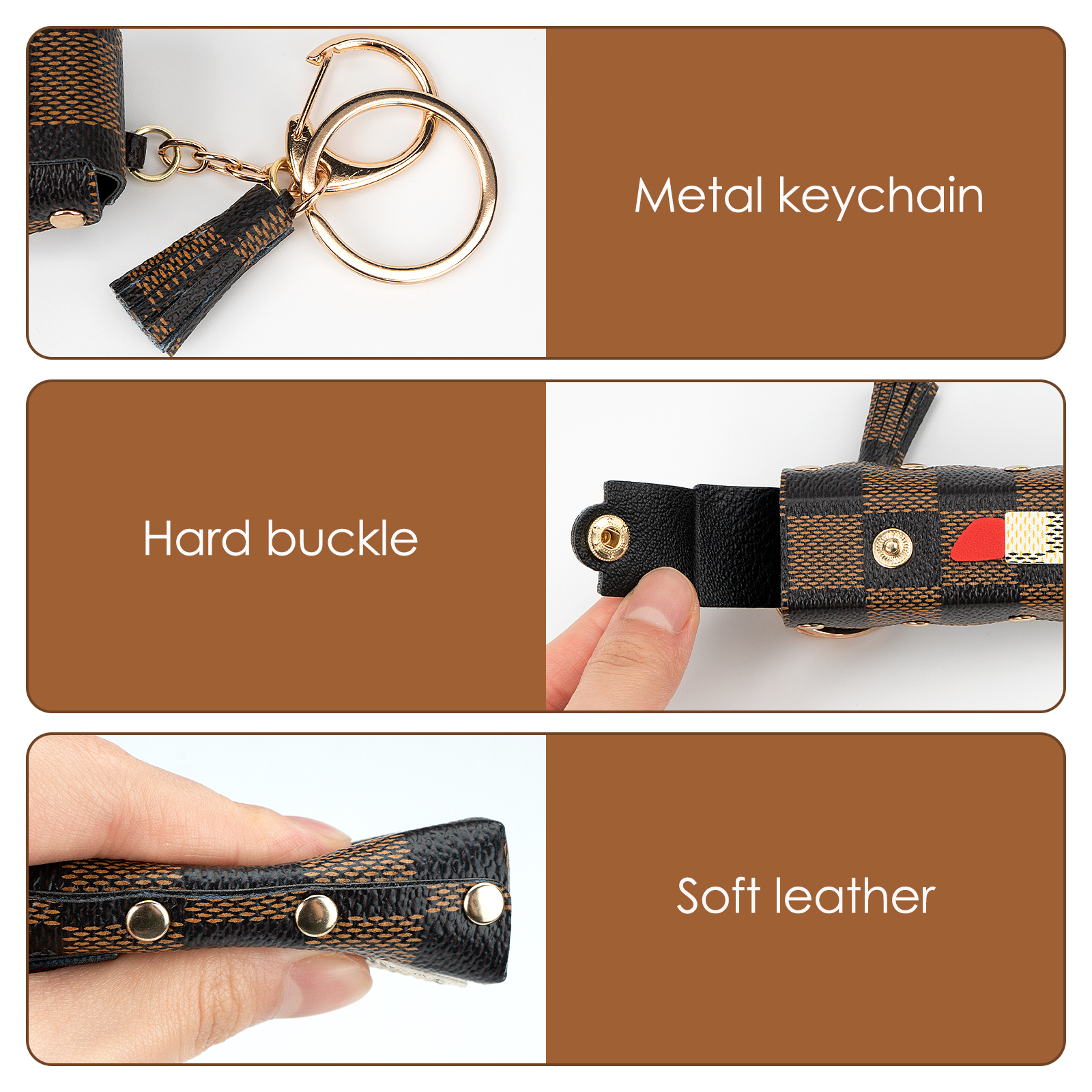 Pack Leather Lipstick Case, Portable Lipstick Organizer with Keychain for Travel, Clip-on Sleeve Chapstick Pouch for Women Girls (Brown & Black Grey)