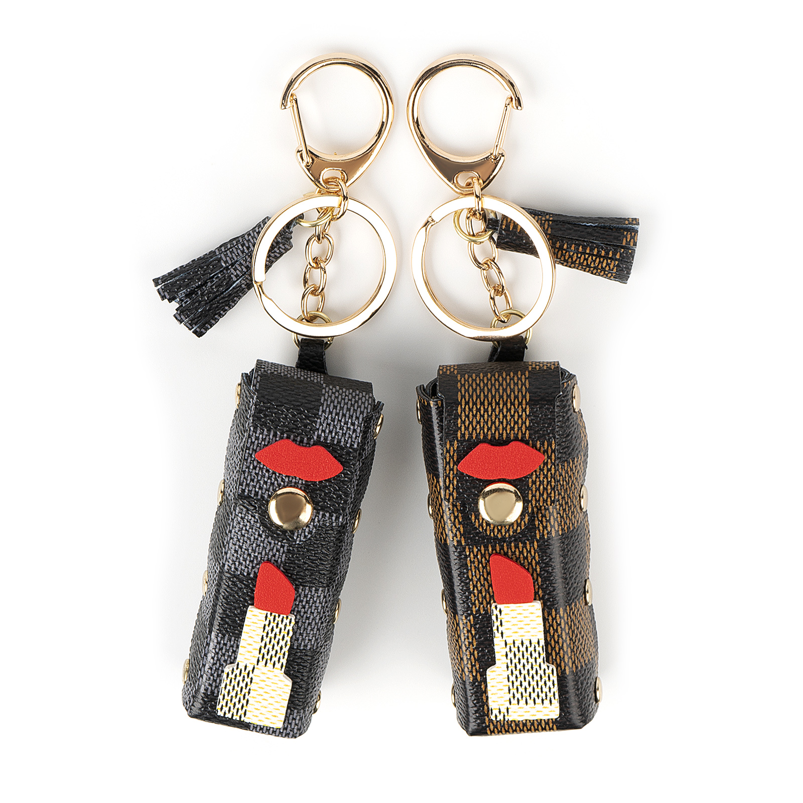 Fashion lipstick bag with key ring for easy access, ideal for travel and outdoor use.