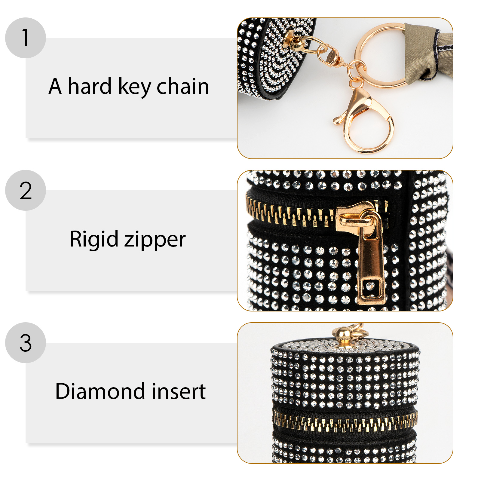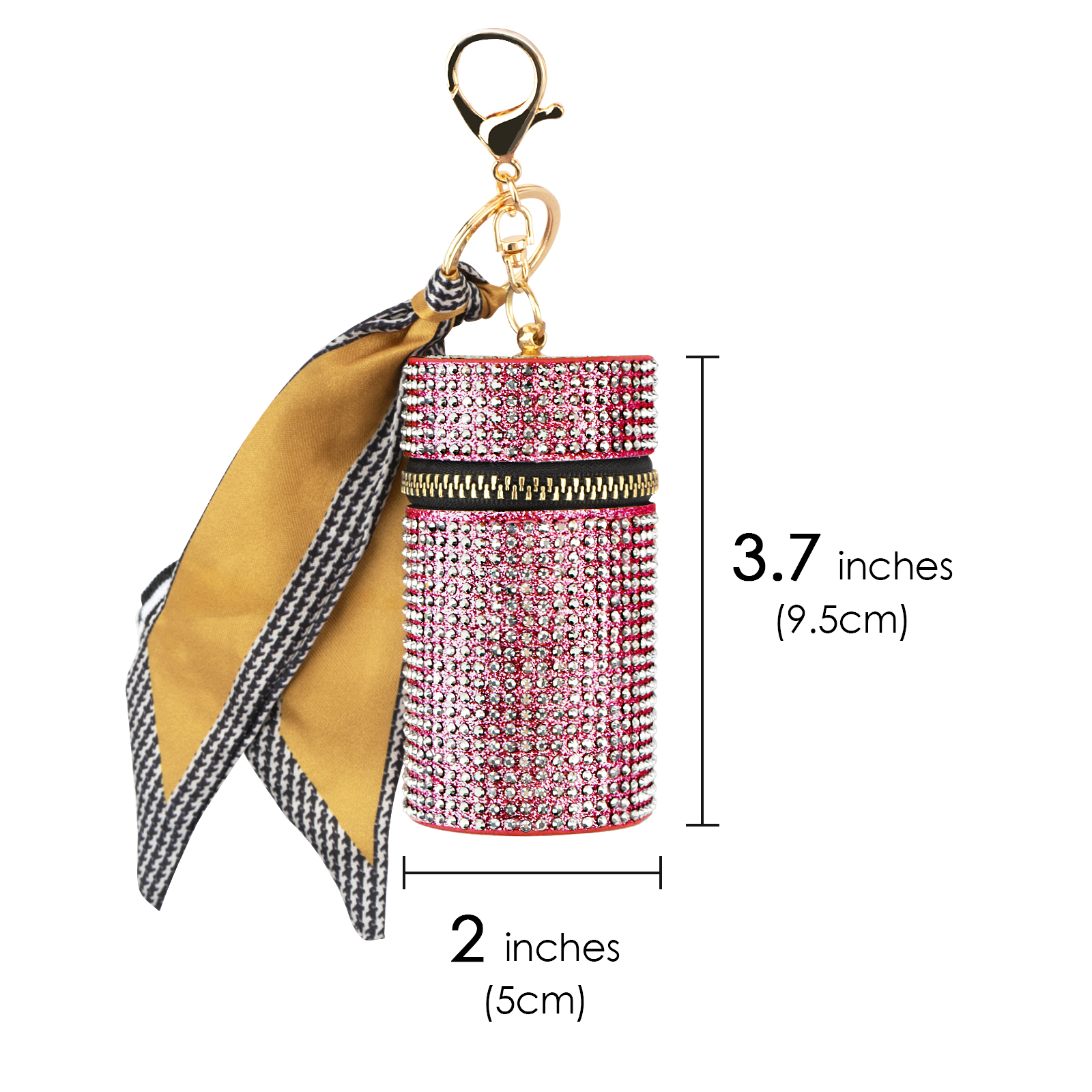 Pack Lipstick Case Keychain, Leather Diamond Lip Gloss Holder, Travel Lipstick Organizer for Purse Perfume Fingernail Polish (Black & Red)