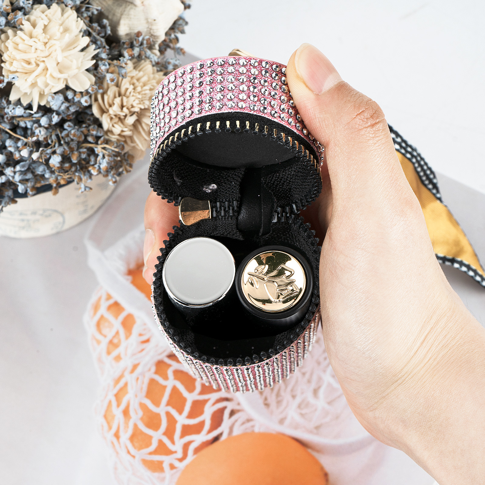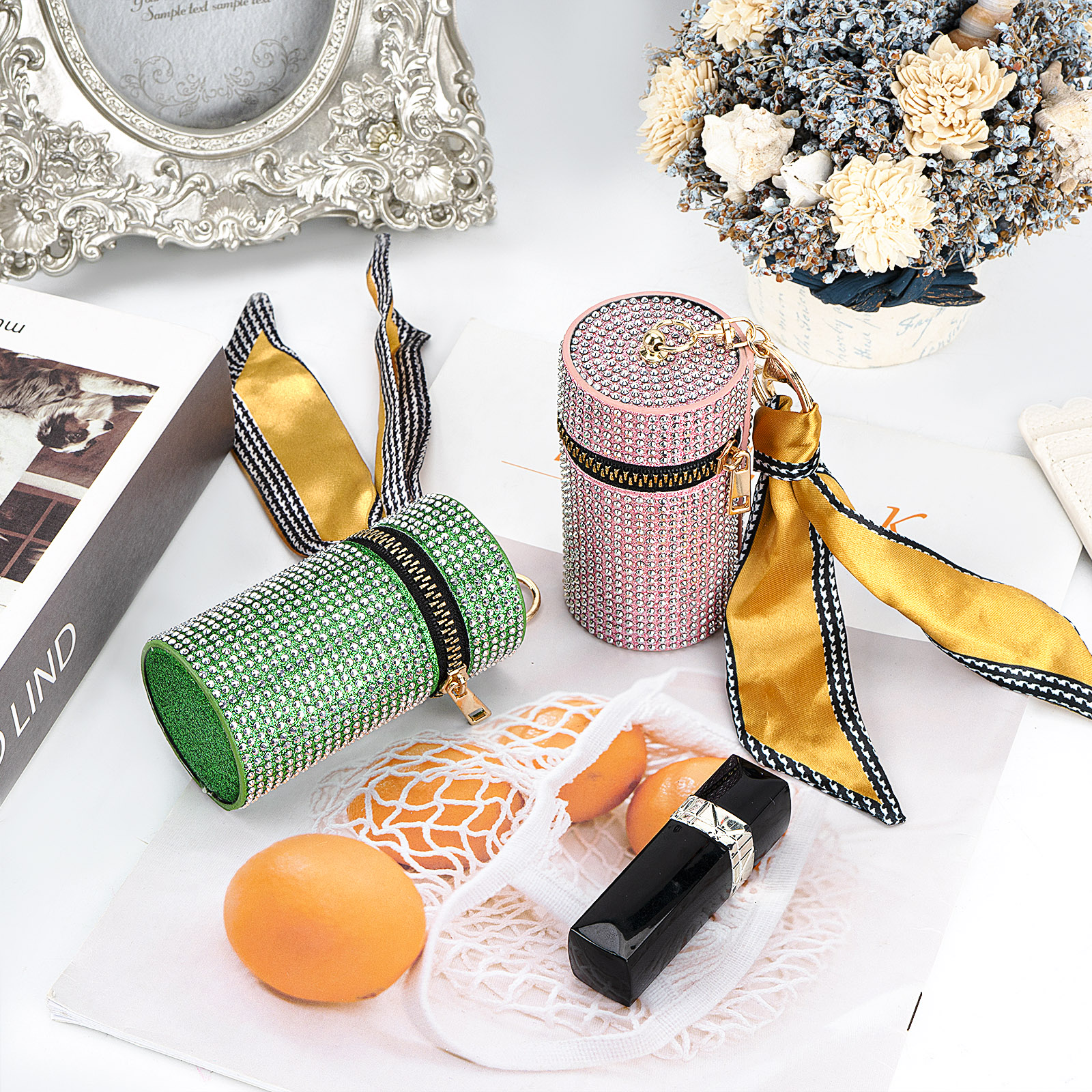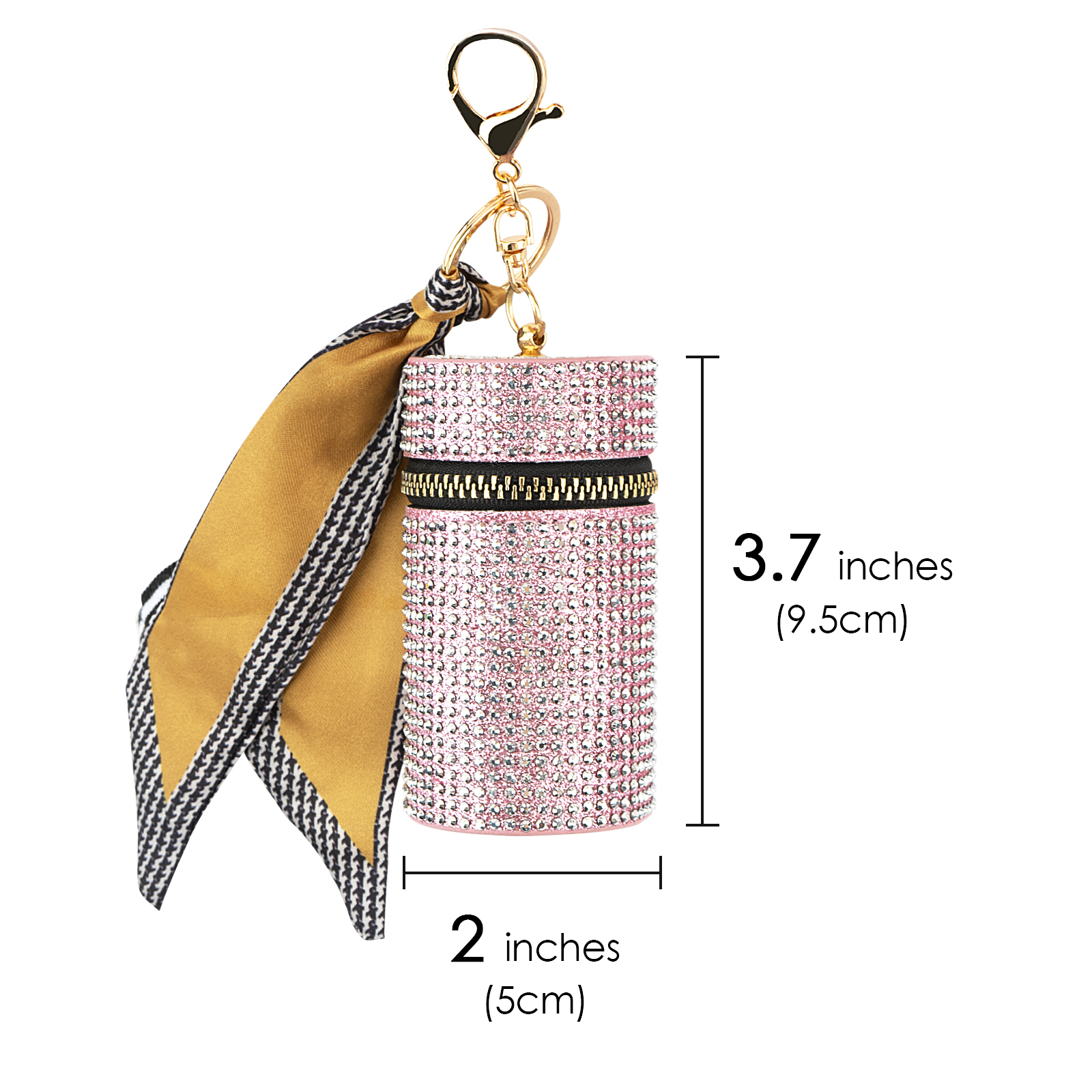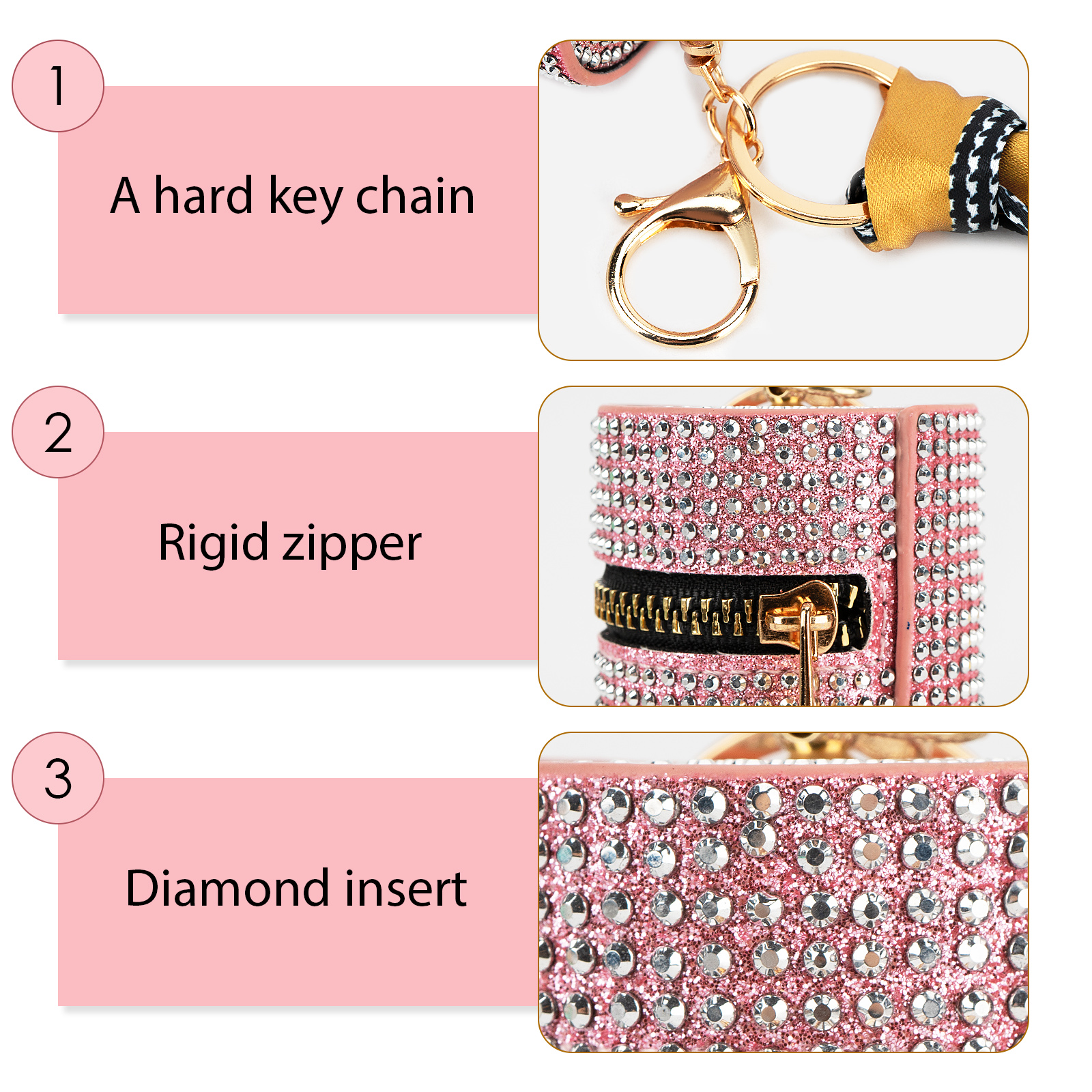 Pack Lipstick Case Keychain, Leather Diamond Lip Gloss Holder, Travel Lipstick Organizer for Purse Perfume Fingernail Polish (Green & Pink)
