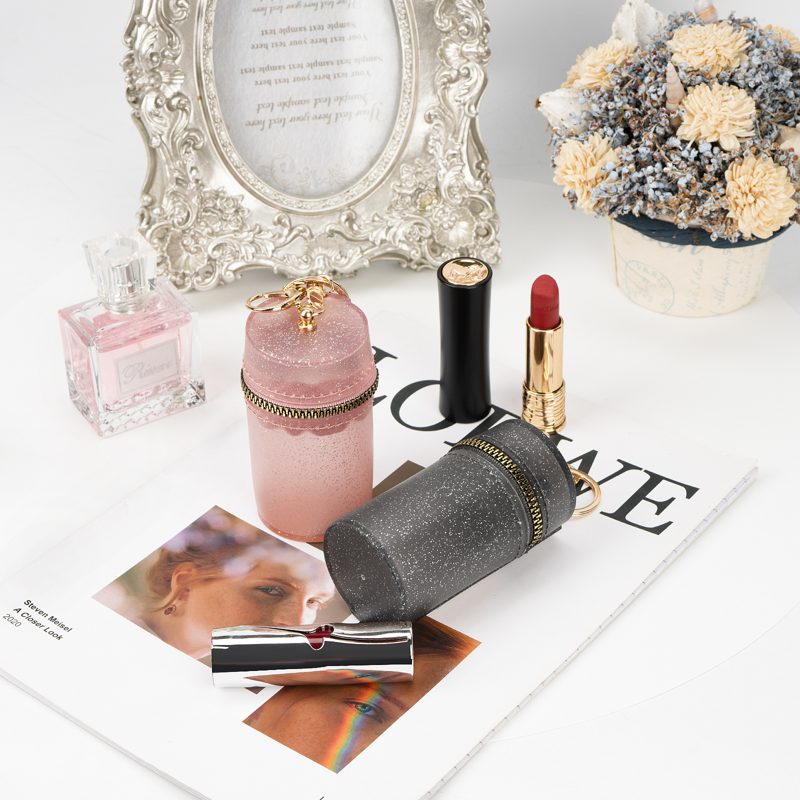 – Fashion lipstick bag with key ring for easy access, suitable for travel and outdoor use.