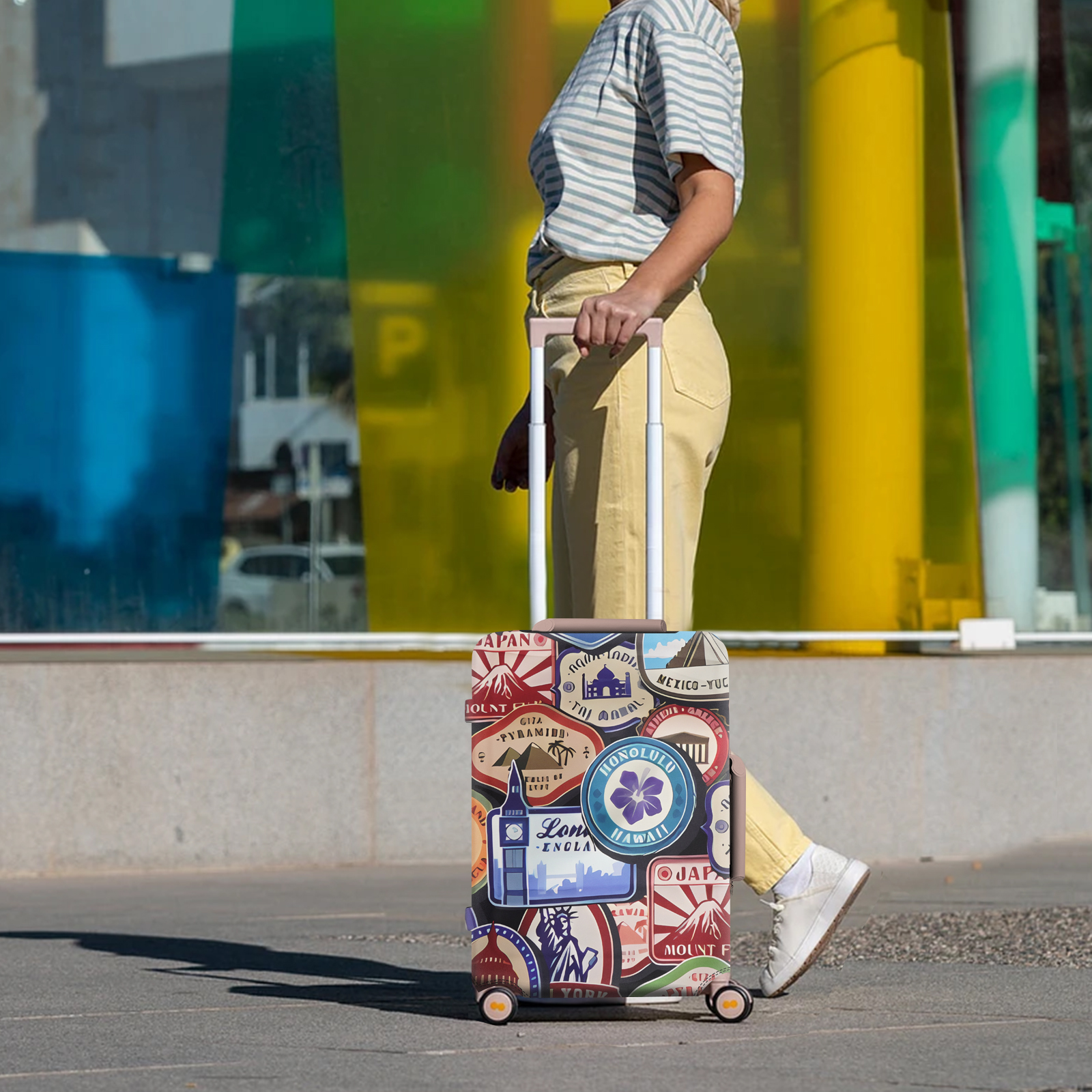 Travel luggage cover has 4 sizes available. S: fits 18-21 inch, M: fits 22-25 inch, L: fits 26-28 inch, XL: fits 29-32 inch. (Please measure the size of the suitcase before purchasing).