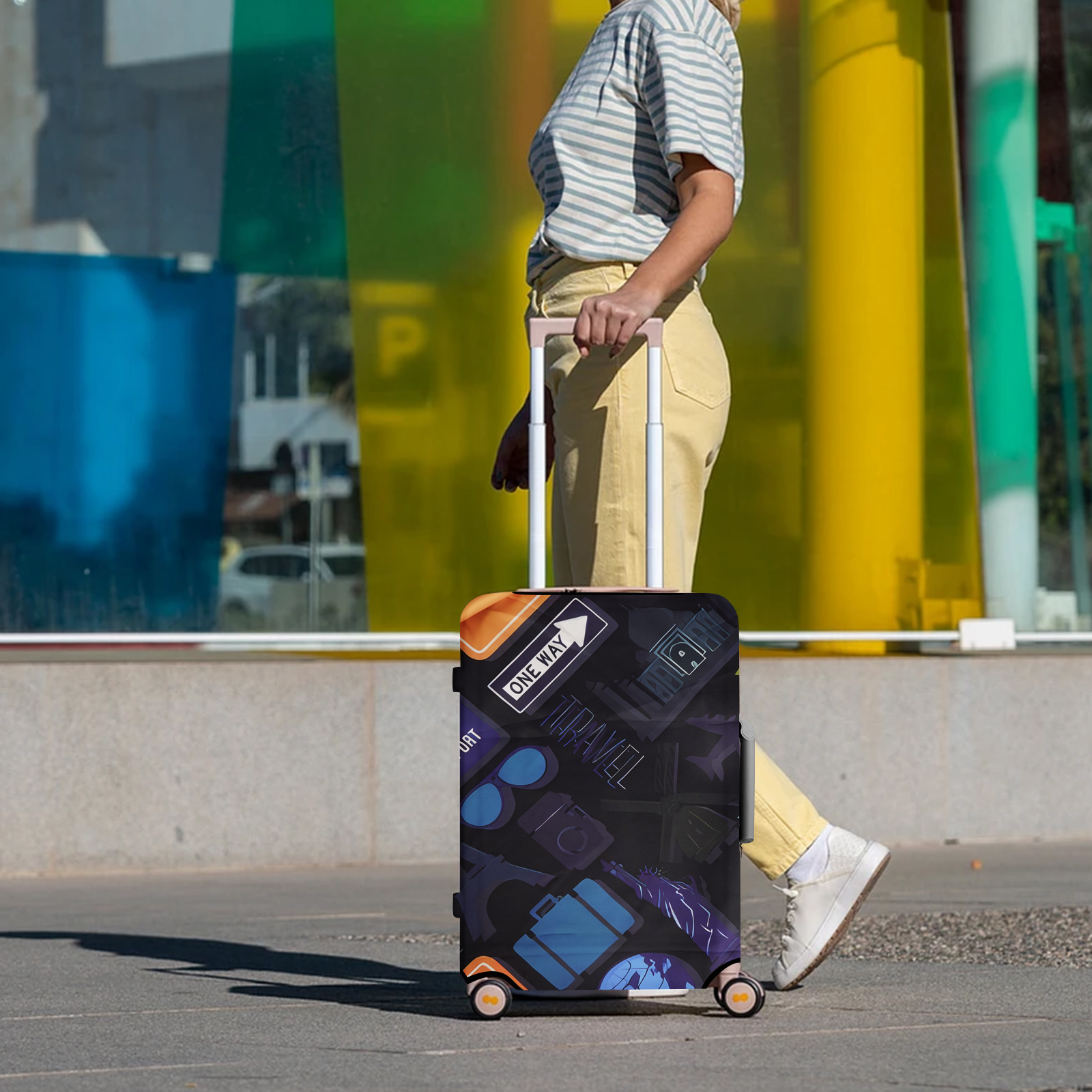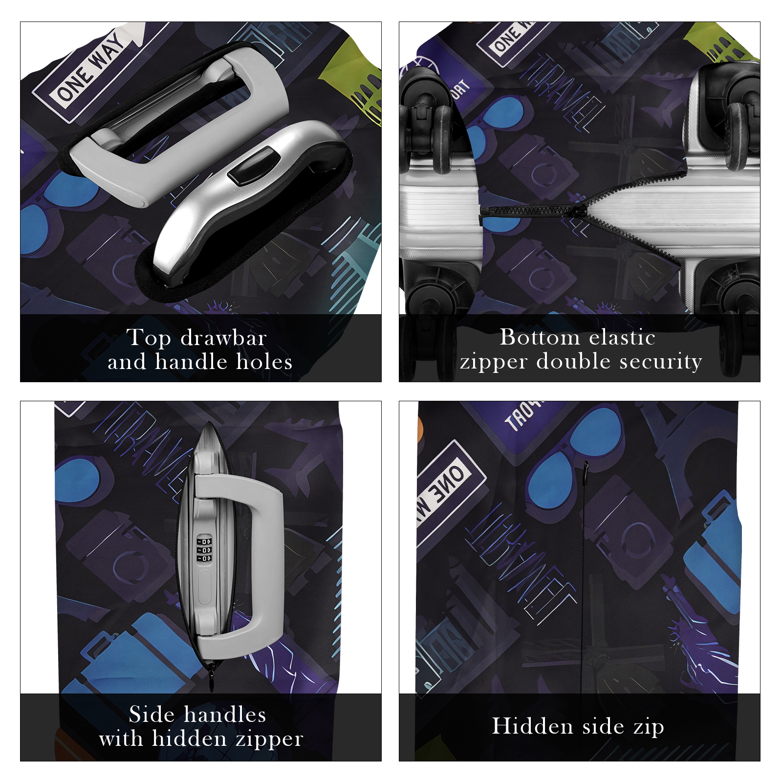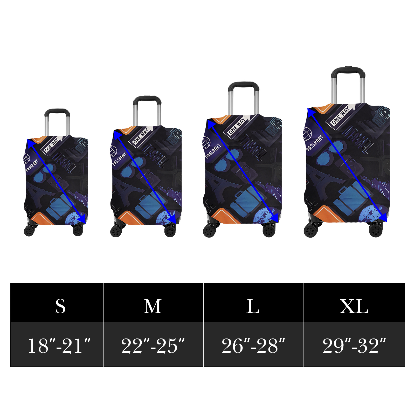 Travel luggage cover has 4 sizes available. S: fits 18-21 inch, M: fits 22-25 inch, L: fits 26-28 inch, XL: fits 29-32 inch. (Please measure the size of the suitcase before purchasing).