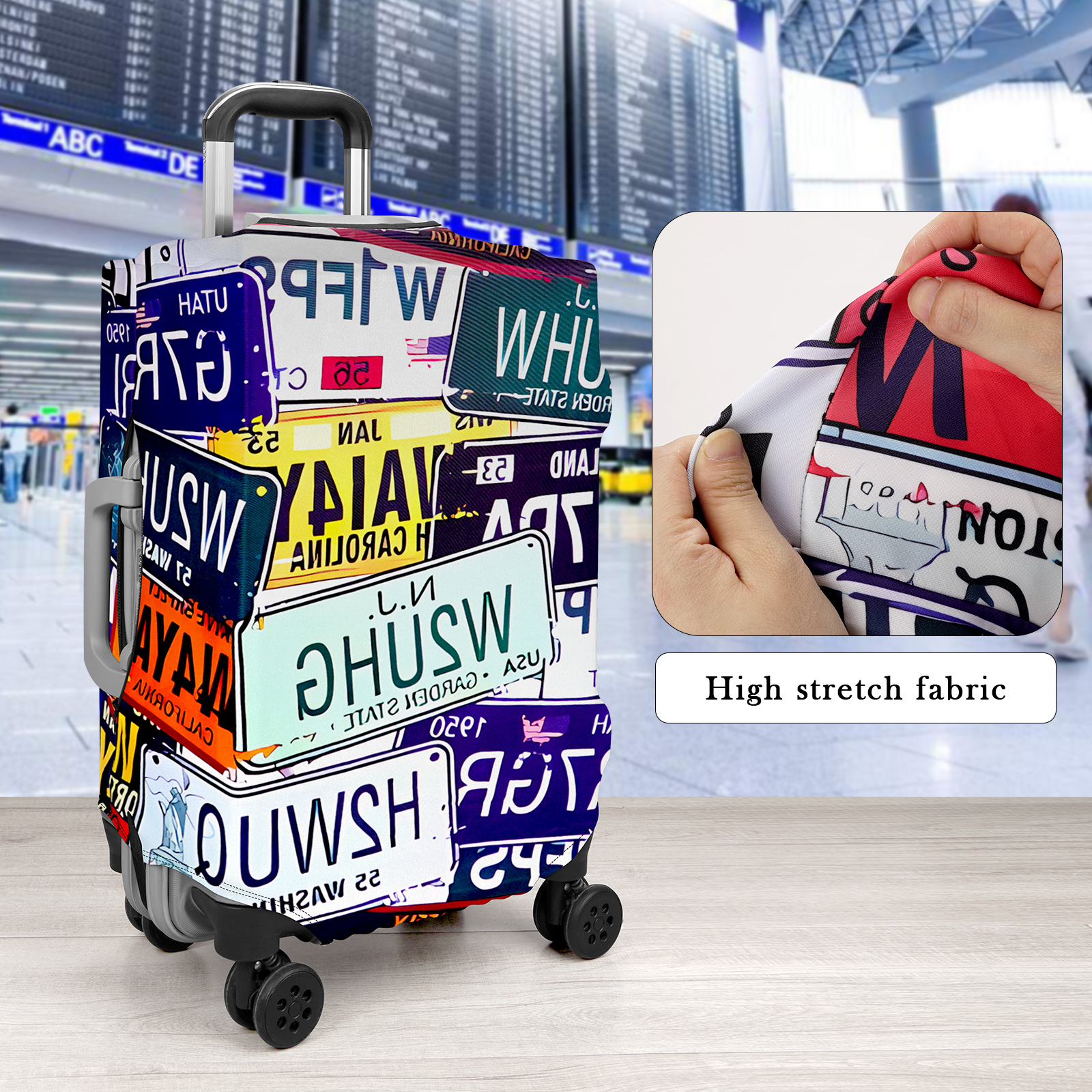 Travel Luggage Cover Protector, Washable Elastic Suitcase Cover, Luggage Protective Cover for 22-25 Inch Luggage (License Plate, M)