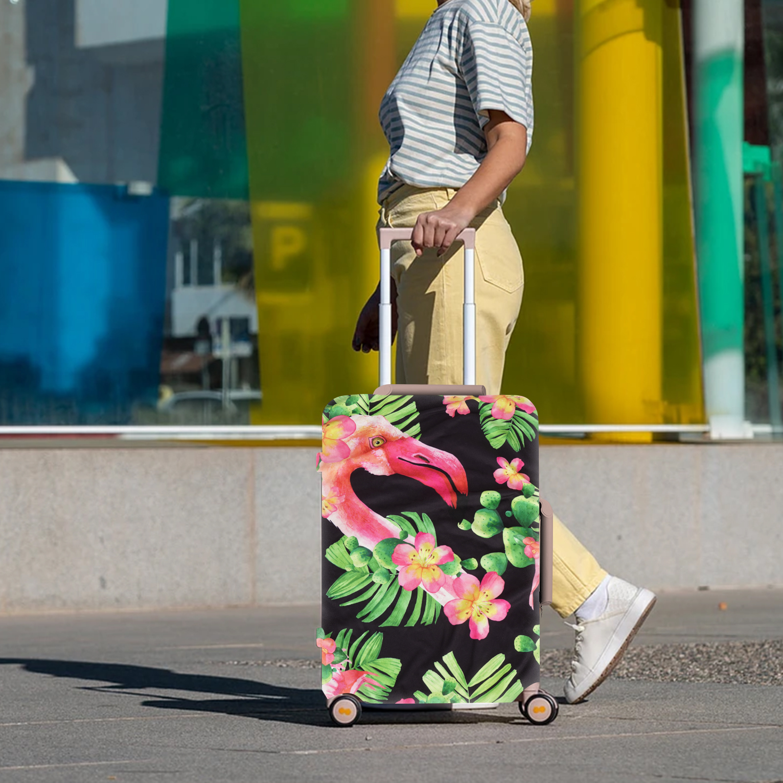 Travel Luggage Cover Suitcase Protector, Washable Suitcase Cover Fits 22-24 Inch Luggage, Elastic Suitcase Protective Cover (L, Flame Bird-Green)