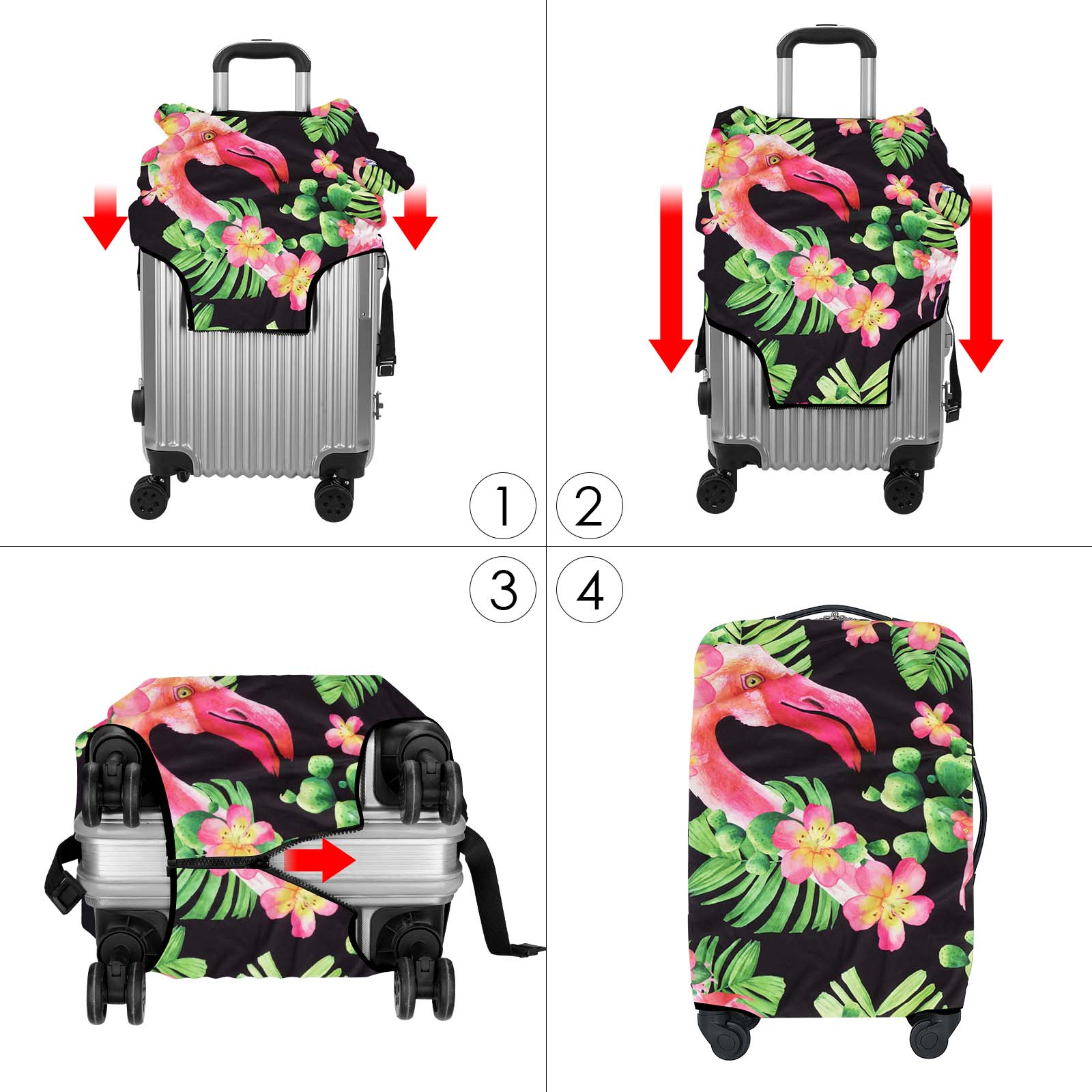 Travel luggage cover has 4 sizes available. M: fits 20-22 inch, L: fits 22-24 inch, XL: fits 24-26 inch, XXL: fits 26-29 inch. (Please measure the size of the suitcase before purchasing).