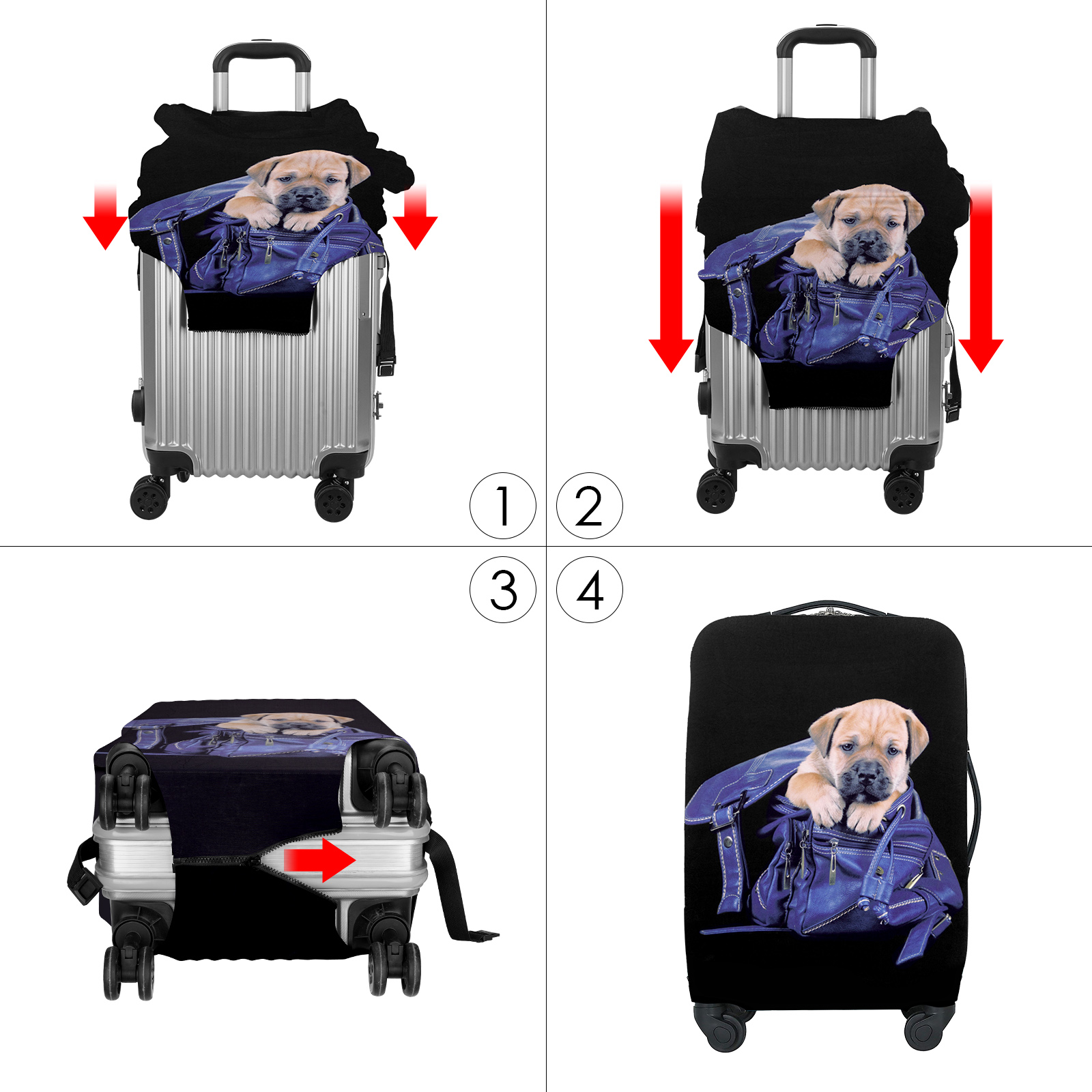Travel Luggage Cover Suitcase Protector, Washable Suitcase Cover Fits 24-26 Inch Luggage, Elastic Suitcase Protective Cover (XL, Puppy)