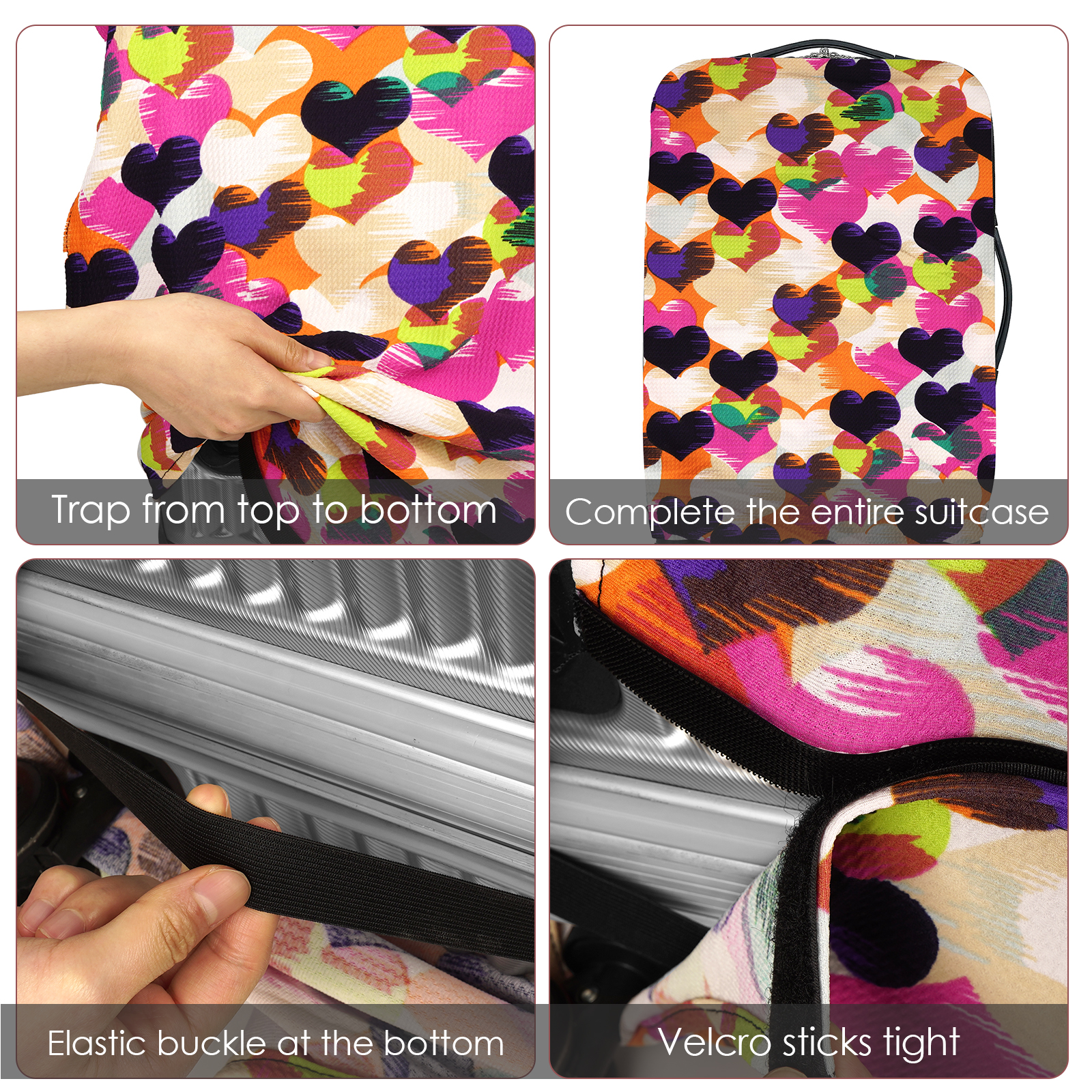 Travel Luggage Cover Suitcase Protector, Washable Suitcase Cover Fits 24 Inch Luggage, Elastic Suitcase Protective Cover (L, Heart)