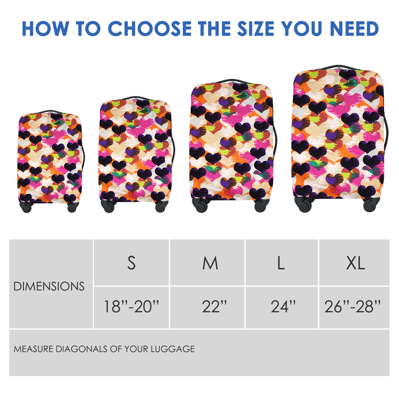 Travel luggage cover has 2 sizes available. L: fits 24 inch, XL: fits 26-28 inch.(Please measure the size of the suitcase before purchasing).